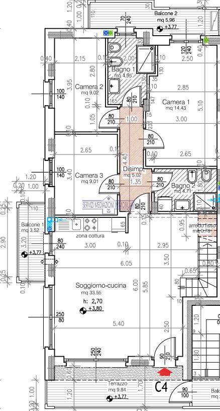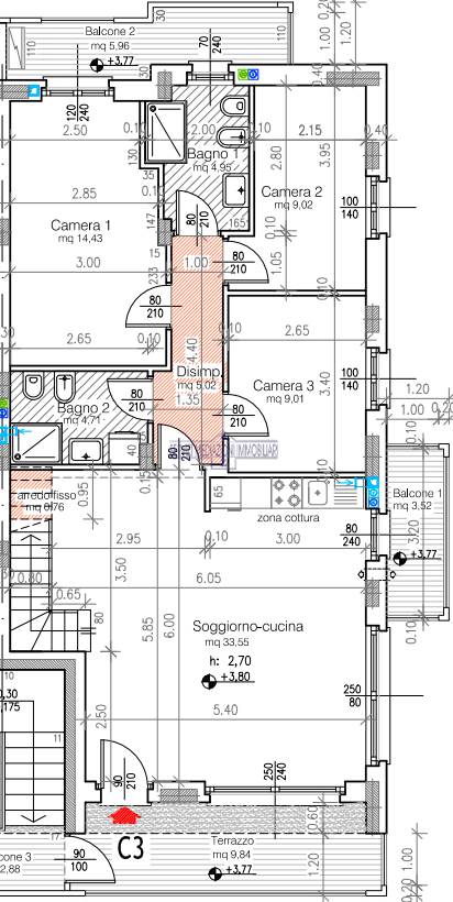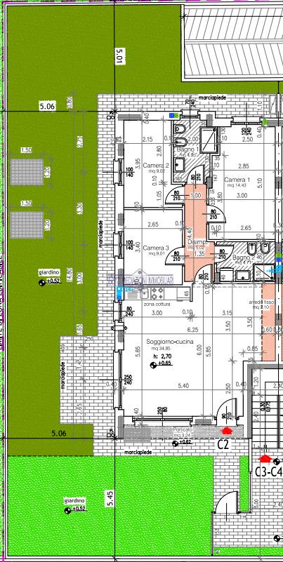 DESCRIZIONE APPARTAMENTO P. T. C1: Appartamento di 134 mq. ca. commerciali di 4 locali, doppi servizi, porticato, giardino privato con accesso indipendente e privato .