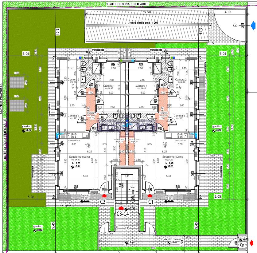 Ideale per chi desidera tranquillità il piccolo condominio è composto da soli 4 appartamenti. La costruzione si sviluppa in un unico corpo di fabbrica di un solo piano fuori terra e un piano interrato destinato ad autorimesse, locale biciclette e cantine. Classe energetica di progetto: A3