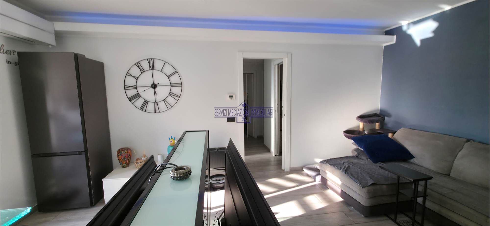 Immobile termo autonomo con basse spese condominiali, composto da ingresso con soggiorno ed zona cucina (da ex cucina abitabile) servito da terrazzino, disimpegno zona notte con doppi servizi, Camera Matrimoniale e Camera, il tutto posto al quarto di cinque piani .
